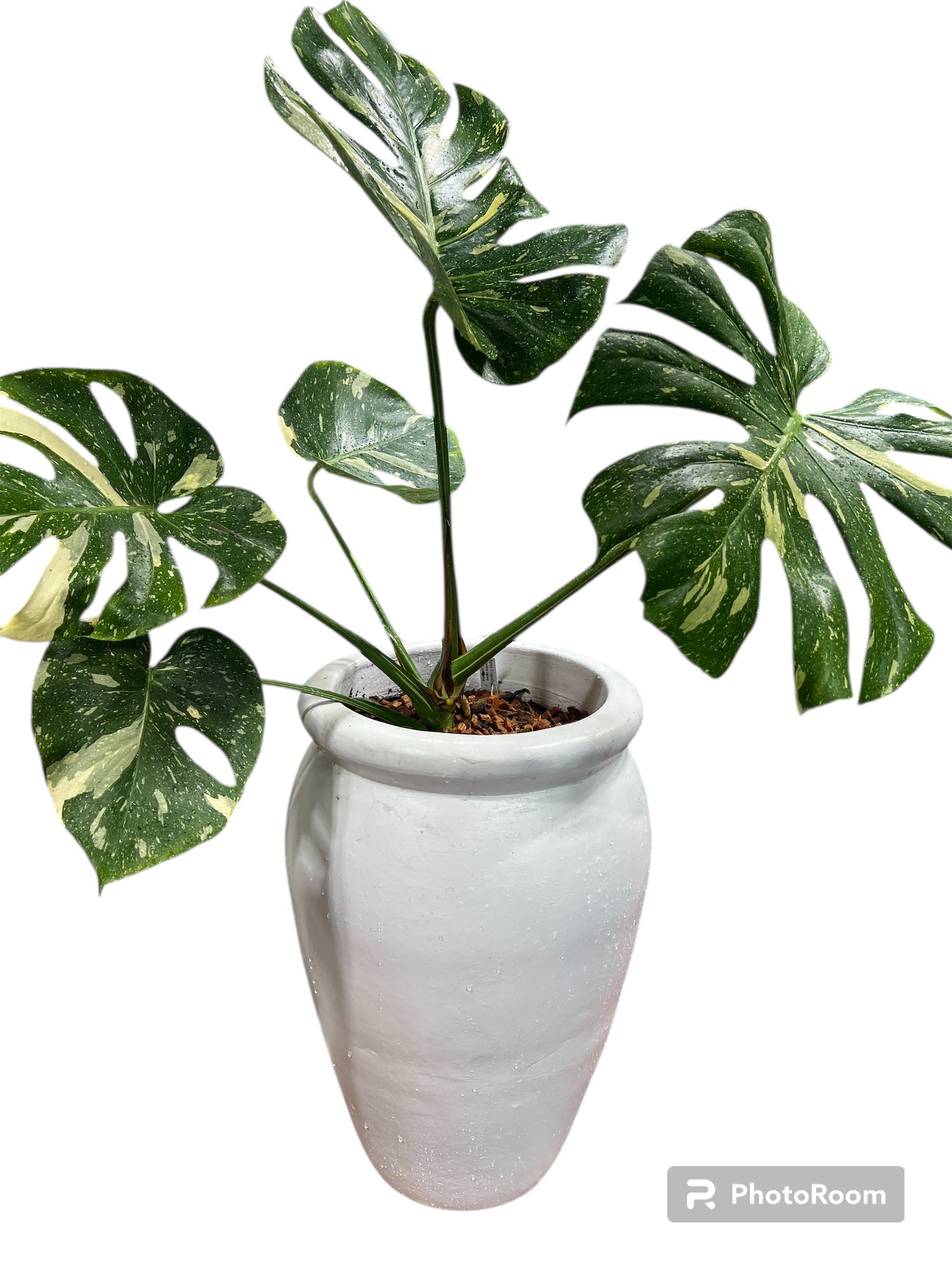 Tissue-culture Monstera Thai Constellation growing in a 25 gallon pot, feeding it Zen.